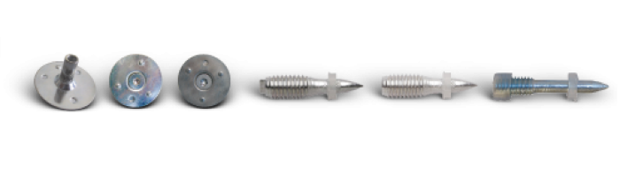 Chiodo Bossong con testa filettata ideale per: fissaggi di collari per passatubi e cavi sospesi; fissaggi provvisori vari su calcestruzzo e acciaio.